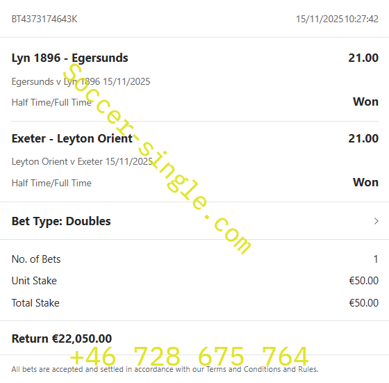 HT/FT RIGGED FIXED MATCHES ON: 11.10.2025 | WIN