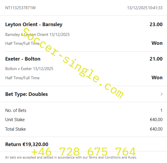 HT/FT RIGGED FIXED MATCHES ON: 13.12.2025 | WIN